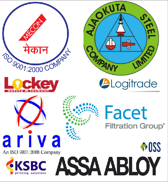 Our impeccable associates include MECON limited, formerly known as Metallurgical & Engineering Consultants (India) Limited, ARIVA Technologies Pvt. India, Ajaokuta Steel limited Company (ASCL), Logitrade Engineering Limited (LEL), School of Arts, SMACE Nigeria Limited, ASSA Abloy of Finland, Facet Filtration Group (USA), Design Apart Venture, Delard Universal Technical Services, Lockey Safety, KSBC Prints.